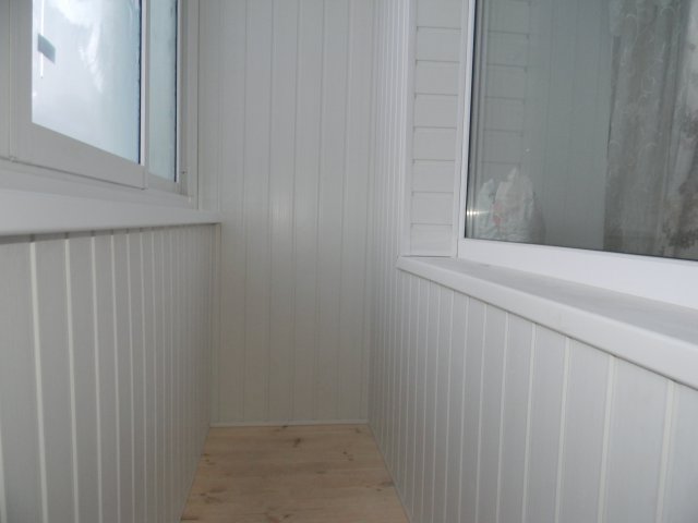 В своей работе мы используем самые прочные отделочные материалы - оцинкованные крашеные, либо гофрированные листы, которые предохраняют целостность отделки балкона от разрушений под воздействием дождя или снега. Жесткость конструкции обеспечивается за счет возведения деревянного каркаса или металлического уголка. В довершении балкон обшивается деревянной вагонкой либо ПВХ панелями.